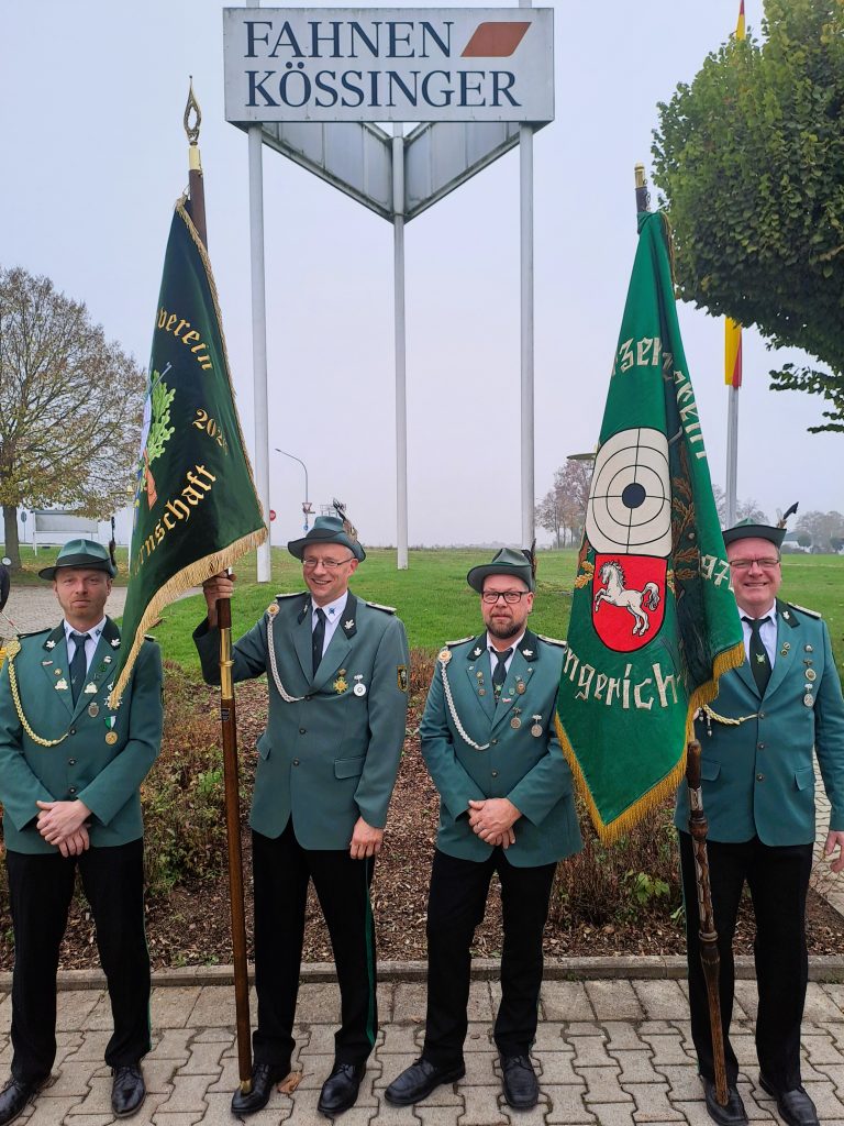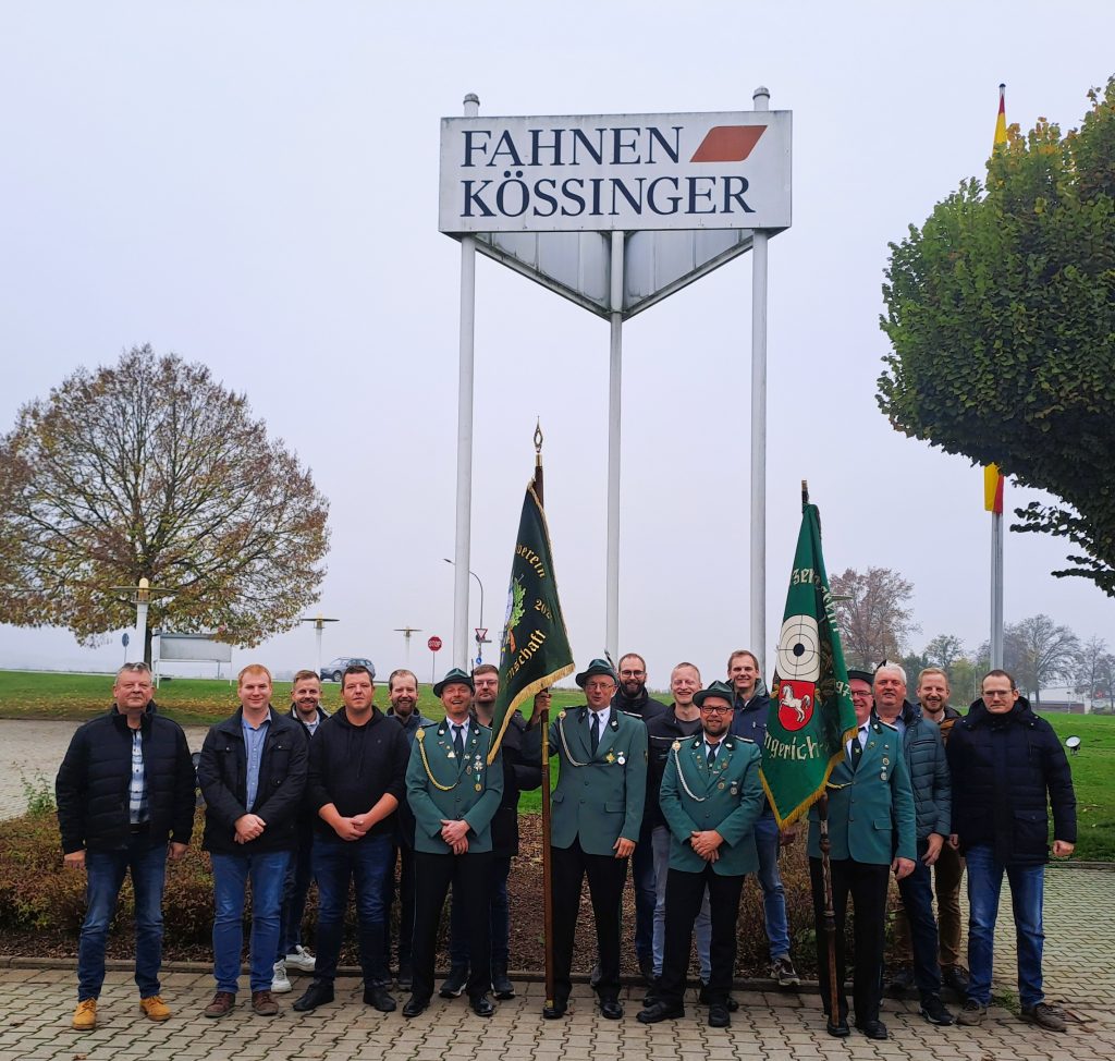 Nach dem Einholen verschiedener Angebote fiel die Entscheidung auf die traditionsreiche Fahnenstickerei Kössinger aus Schierling bei Regensburg. Im November 2024 machte sich schließlich eine Delegation des Schützenvereins auf den Weg nach Bayern, um die neue Fahne persönlich in Empfang zu nehmen und nach Lengerich zu bringen.