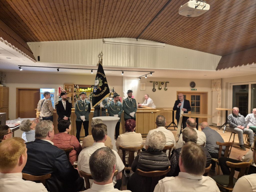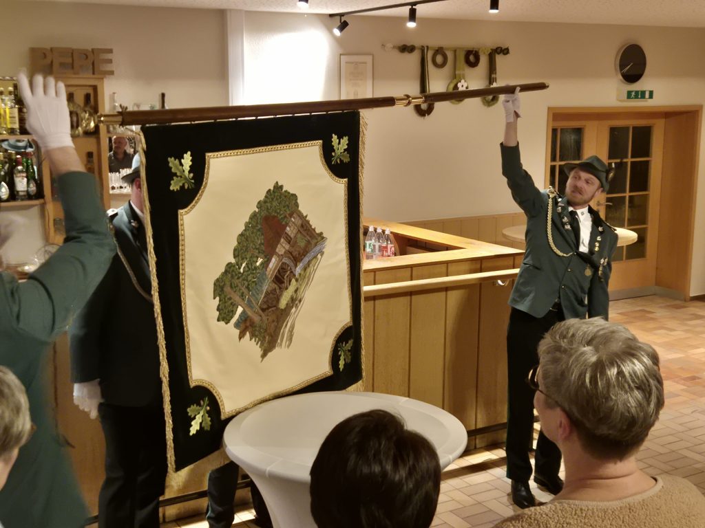 Im Zuge der Vorbereitungen auf das 425-jährige Jubiläum wurde der Zustand der bisherigen Vereinsfahne aus dem Jahr 1976 erneut begutachtet. Dabei zeigte sich, dass die Fahne nach vielen Jahrzehnten im Einsatz in einem schlechten Zustand war und eine fachgerechte Sanierung leider nicht mehr möglich erschien. Nach sorgfältiger Beratung fasste der Verein daher den Entschluss, eine neue Vereinsfahne anfertigen zu lassen.